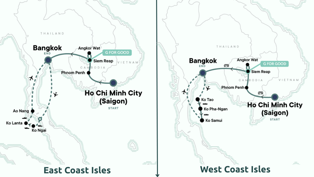 East Coast (Gulf): HCMC → Phnom Penh → Siem Reap → Bangkok → Koh Samui • Koh Pha Ngan • Koh Tao