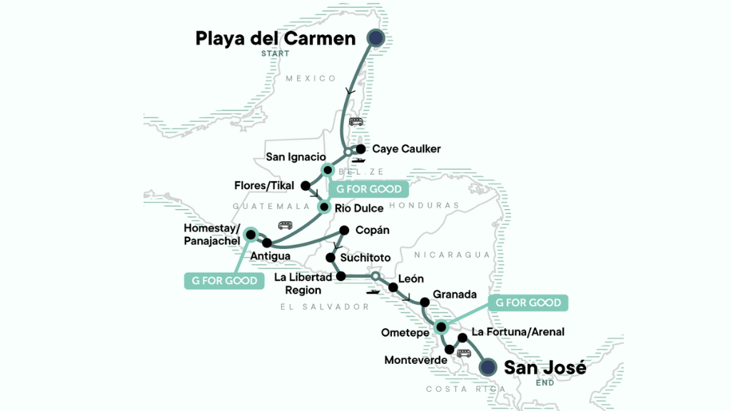 Belize’s Hol Chan snorkelling/diving, ATM cave and Xunantunich near San Ignacio; Pacaya volcano hike from Antigua; Masaya volcano from Granada; Monteverde zipline/hanging bridges; La Fortuna canyoning/rafting/caving/paddle boarding; El Salvador surf lessons and Tamanique Waterfalls.