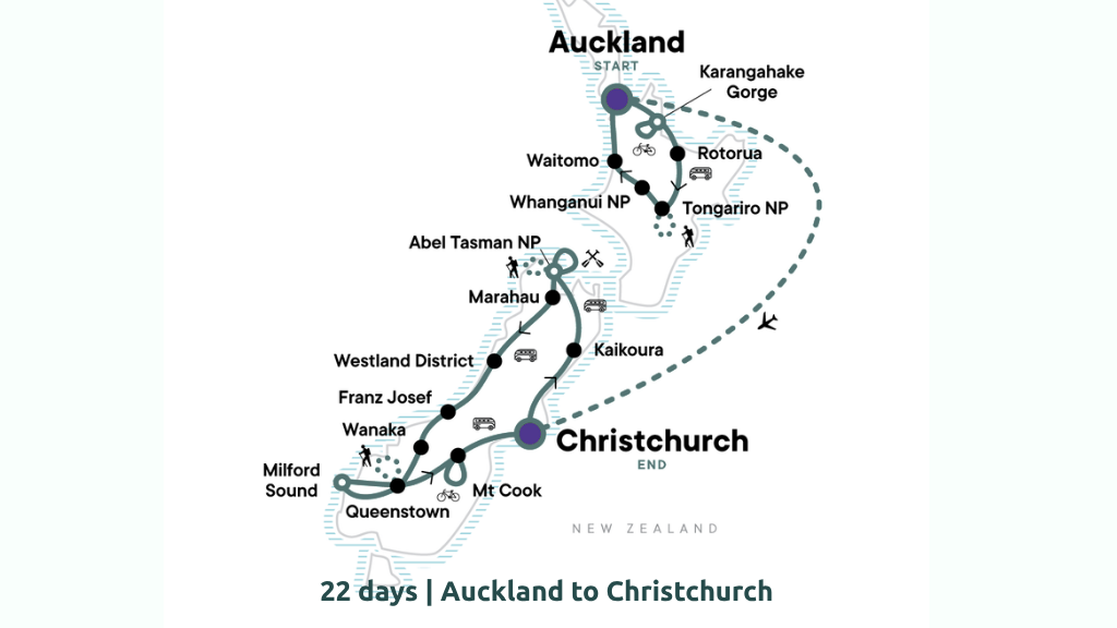 For the 22-Day Full Traverse (Auckland to Christchurch): Merges both segments with seamless flight transition, adding layered depths.