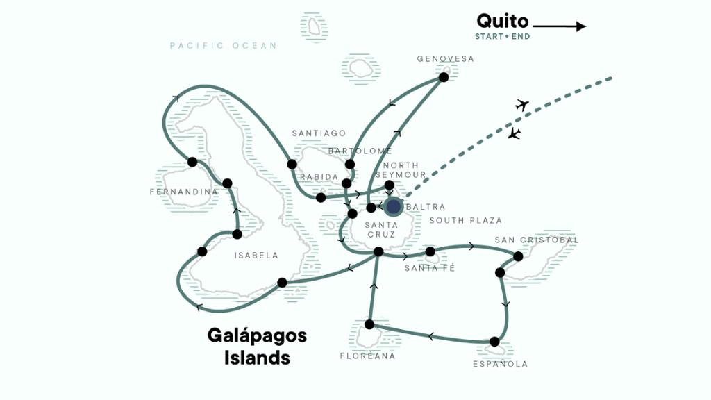 • Includes: 2 hotel nights in Quito · All meals on ship · Snorkel gear + wetsuits · Domestic flights to/from the islands